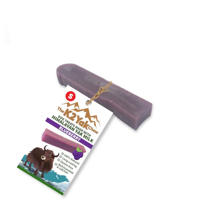 The K2 Blueberry Yak Chew combines the centuries-old tradition of Himalayan yak chews with a fruity twist. Crafted using milk from Nepal and made in India, this durable chew is flavoured with natural blueberry to give your dog a sweet yet safe chewing experience — without any artificial additives.